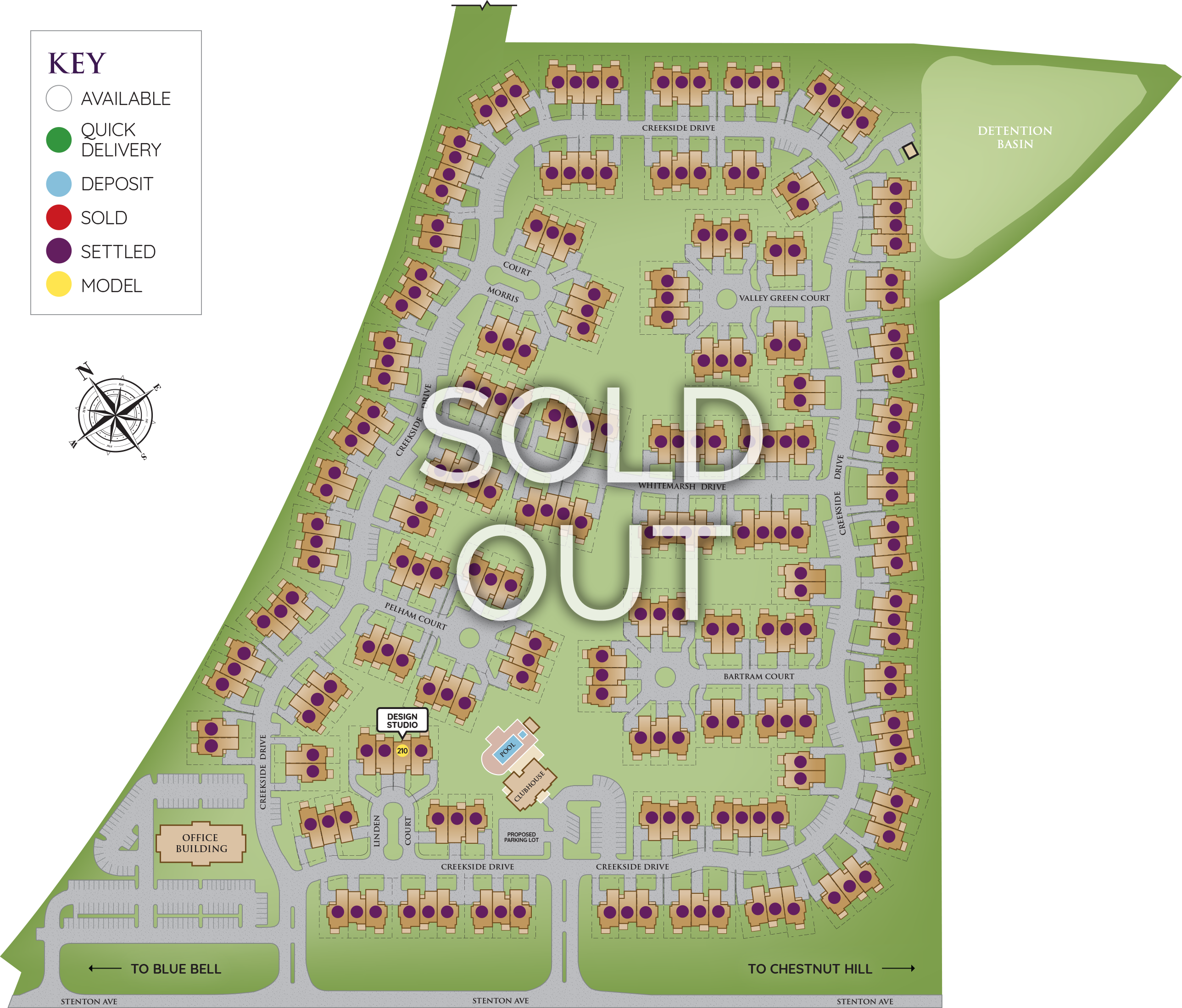View the site plan for our new homes in Flourtown, PA. Your new home is surrounded by nature in a picturesque neighborhood not far from area employers, schools, shops, and more. The Reserve at Creekside is conveniently located near major highways for a quick commute. Call us to learn more today